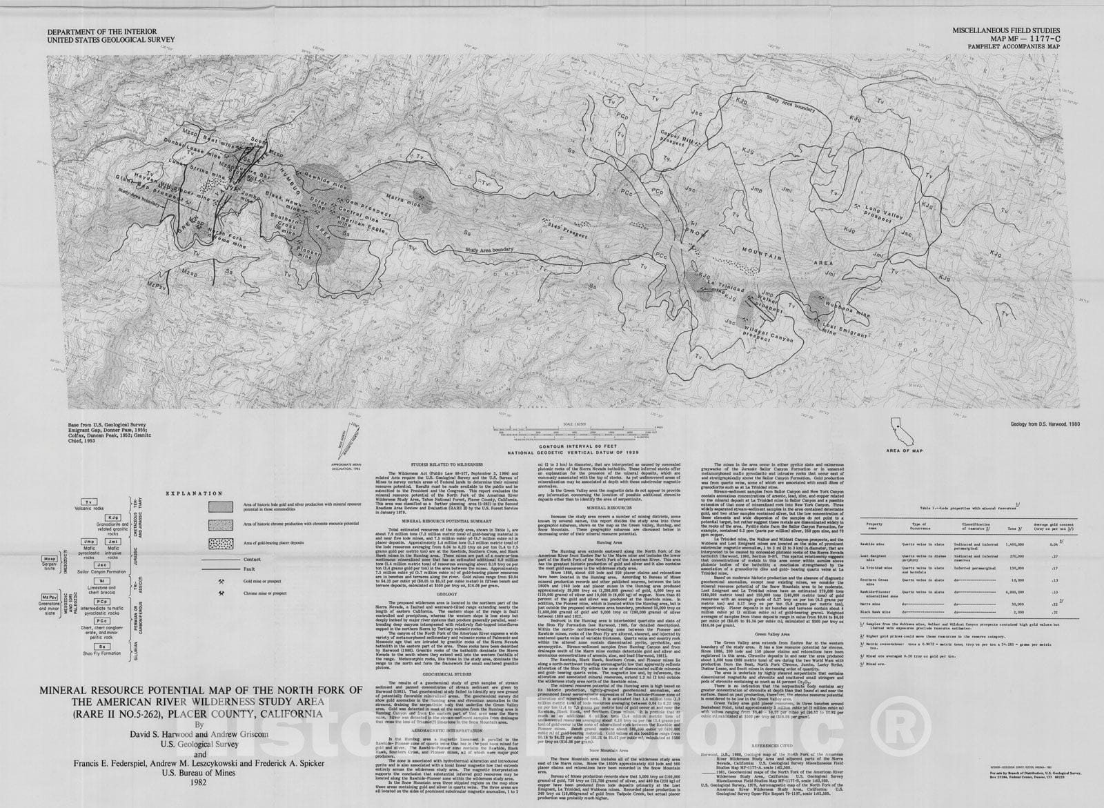 Map : Mineral resource potential map of the North Fork of the American River Wilderness Study Area (RARE II No. 5-262), Placer County, California, 1982 Cartography Wall Art :