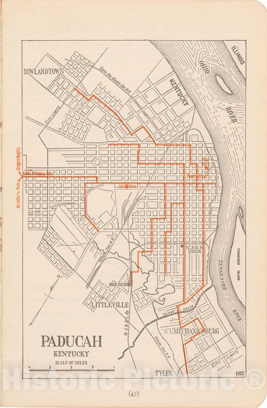 Historic Map : Paducah 1914 , North American Electric Power and Traction Companies , Vintage Wall Art