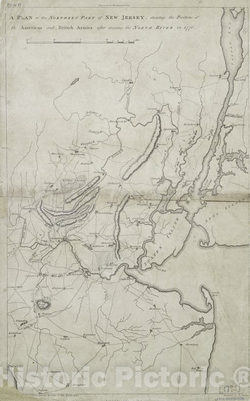 Historical Map, A Plan of The Northern Part of New Jersey : shewing The Positions of The American and British Armies After Crossing The North River in 1776, Vintage Wall Art