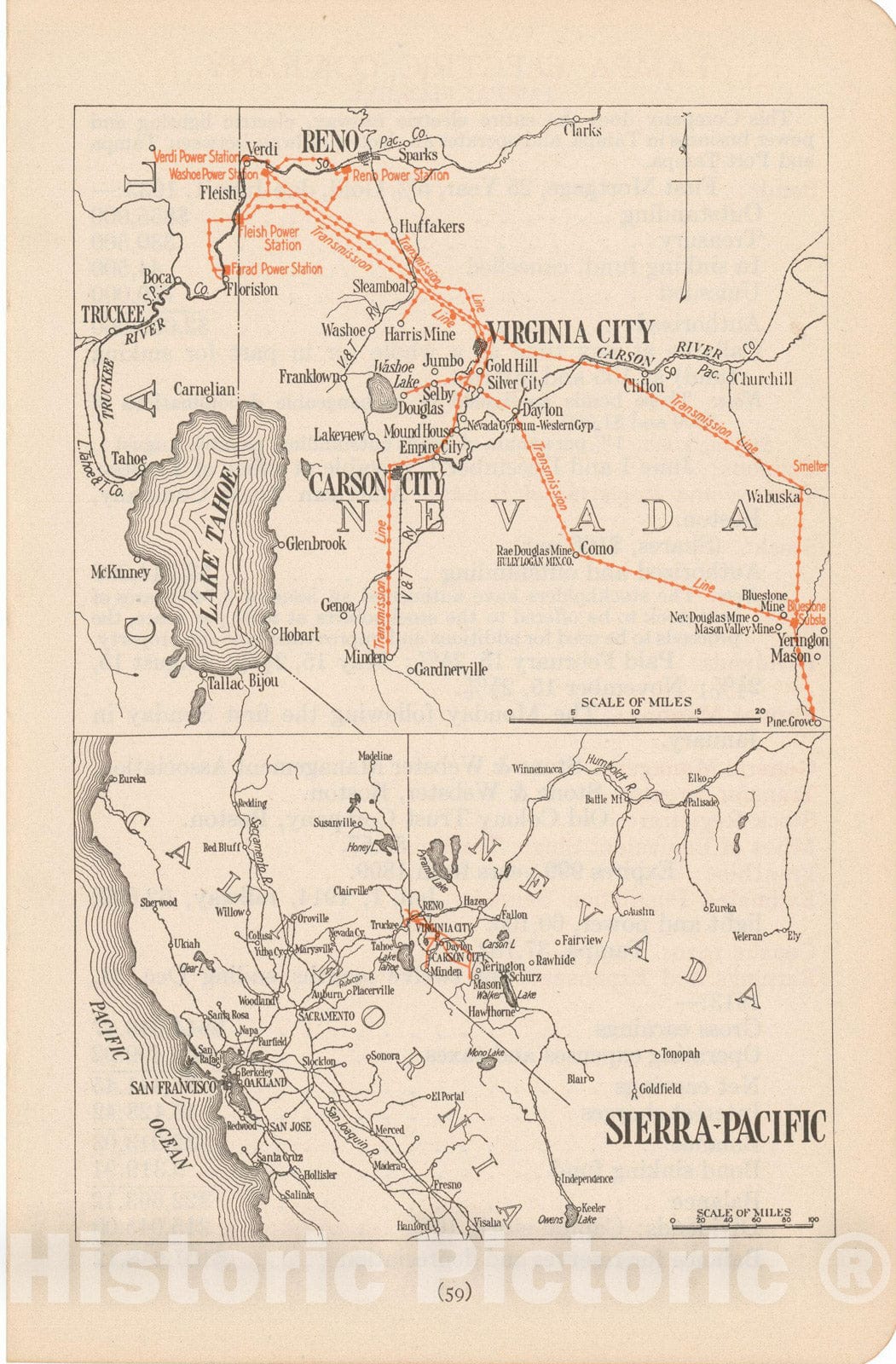 Historic Map : Sierra-Pacific 1914 , North American Electric Power and Traction Companies , Vintage Wall Art