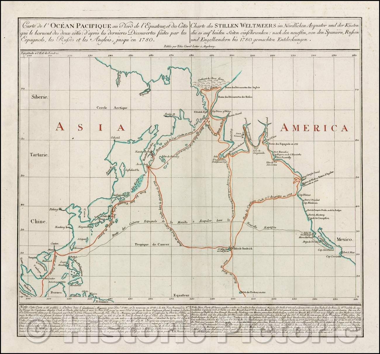 Historic Map - Carte de l'Ocean Pacifique au Nord de l'Equateur d'Apres les dernieres/Map of the Northern Pacific and coasts of Asia & America, 1781 - Vintage Wall Art