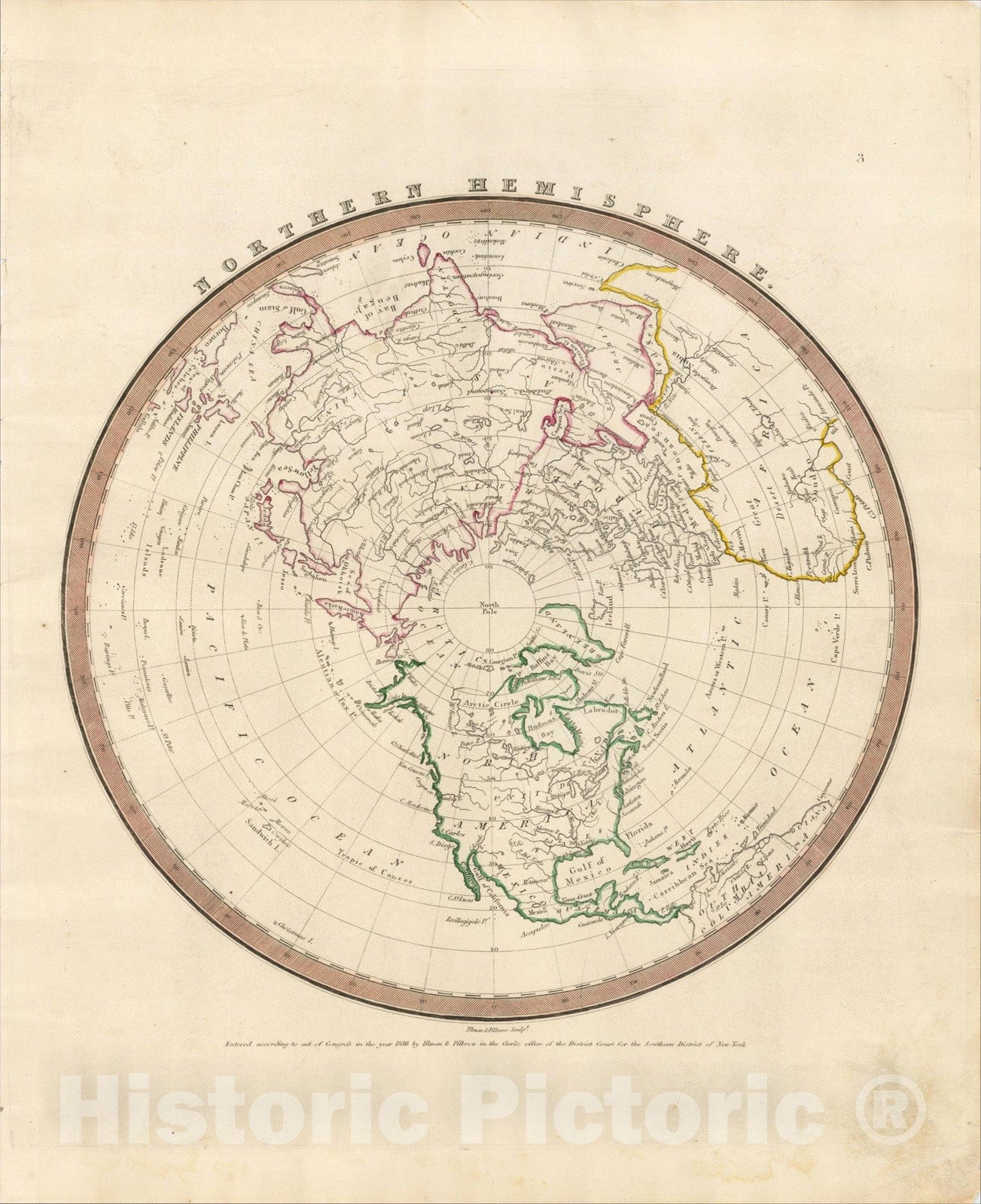 Historic Map : Northern Hemisphere, 1836, David Hugh Burr, Vintage Wall Art