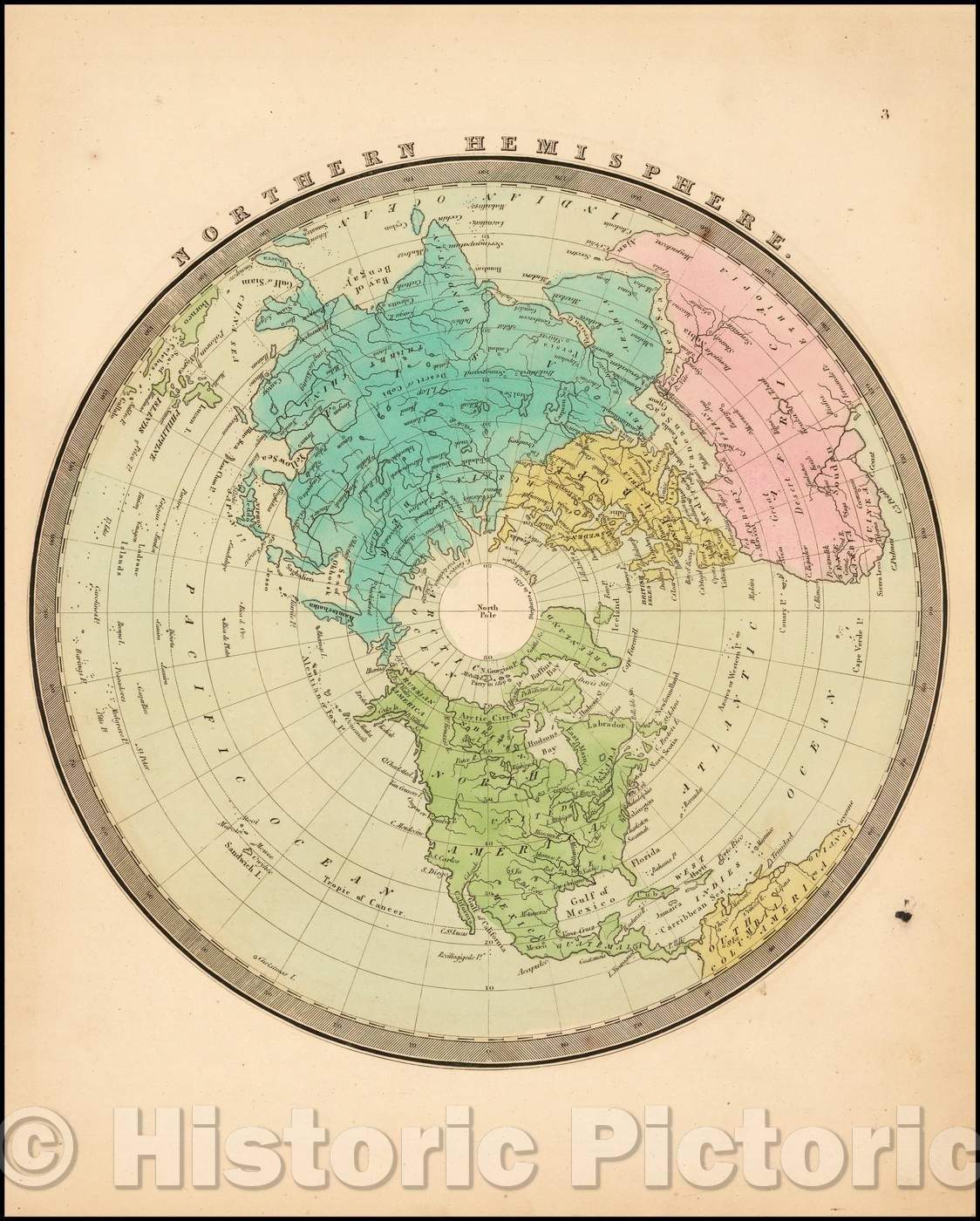 • .Historic Map - Northern Hemisphere, 1842, Jeremiah Greenleaf - Vintage Wall Art