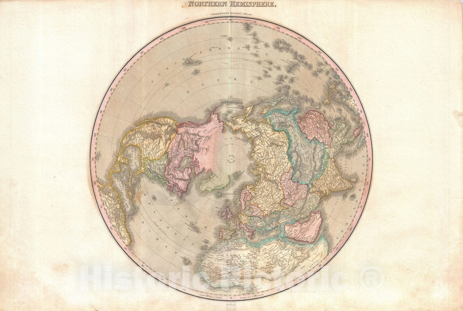 Historic Map : The Northern Hemisphere " North Pole, Arctic ", Pinkerton, 1818, Vintage Wall Art