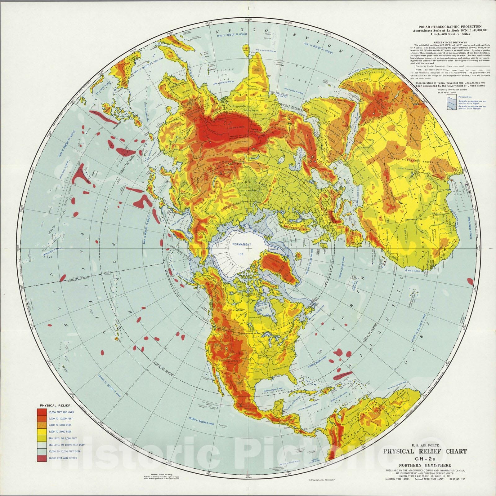U.S. Air Force. Physical Relief Chart GH-2a, Northern Hemisphere. | U.S. Air Force. Physical Relief Chart GH-2a, Northern Hemisphere. | Revised from 1947 original. Color.