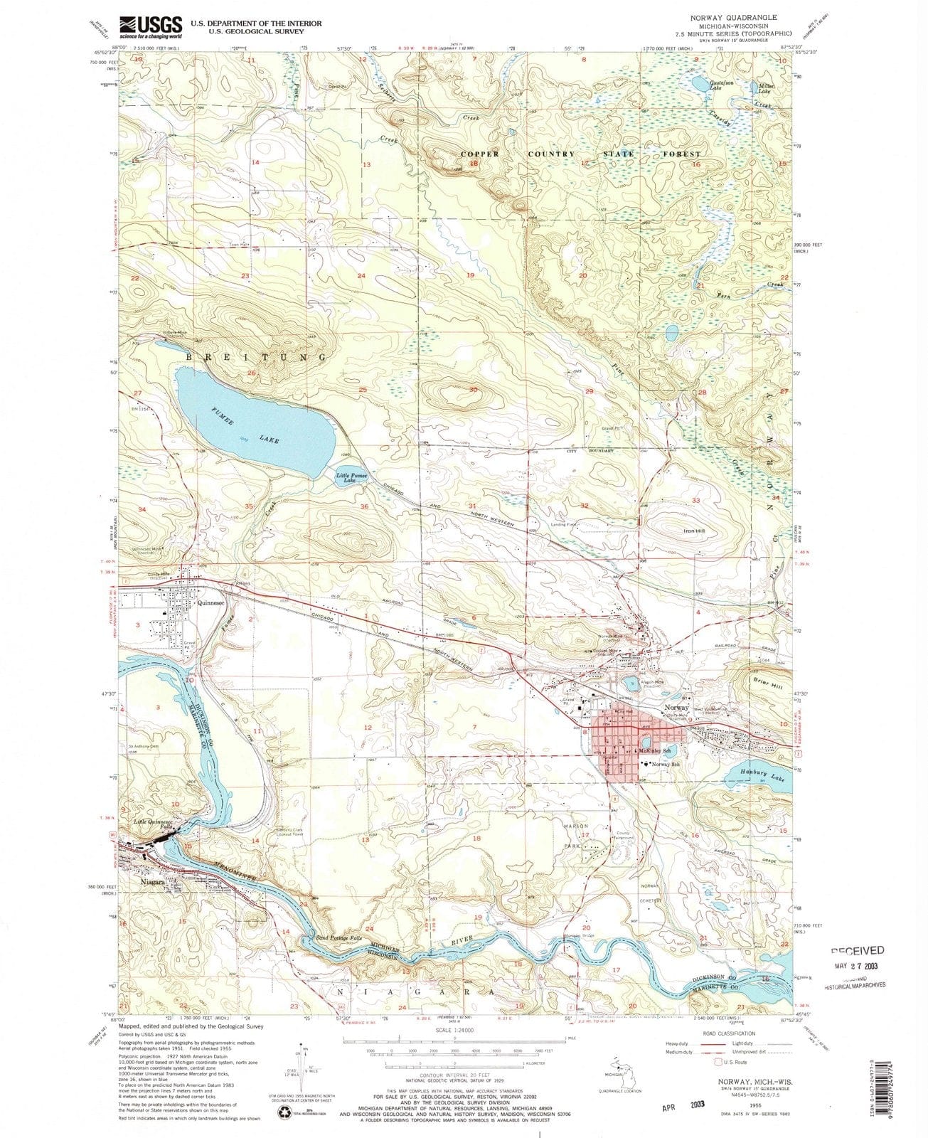 1955 Norway, MI - Michigan - USGS Topographic Map