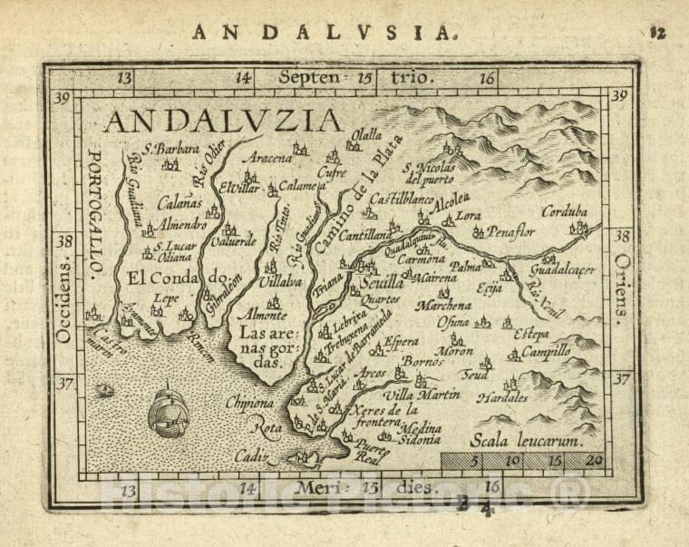 Historic 1603 Map - Andaluzia. - Norway - Andalusia (Spain) - Abraham Ortelius His Epitome Of The Theater Of The Worlde.