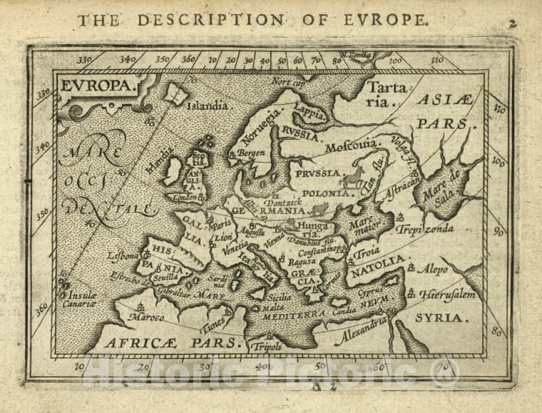 Historic 1603 Map - Europa. - Norway - Europe - Abraham Ortelius His Epitome Of The Theater Of The Worlde.