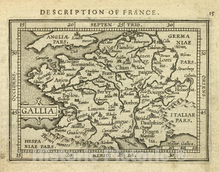 Historic 1603 Map - Gallia. - Norway - France - Abraham Ortelius His Epitome Of The Theater Of The Worlde.