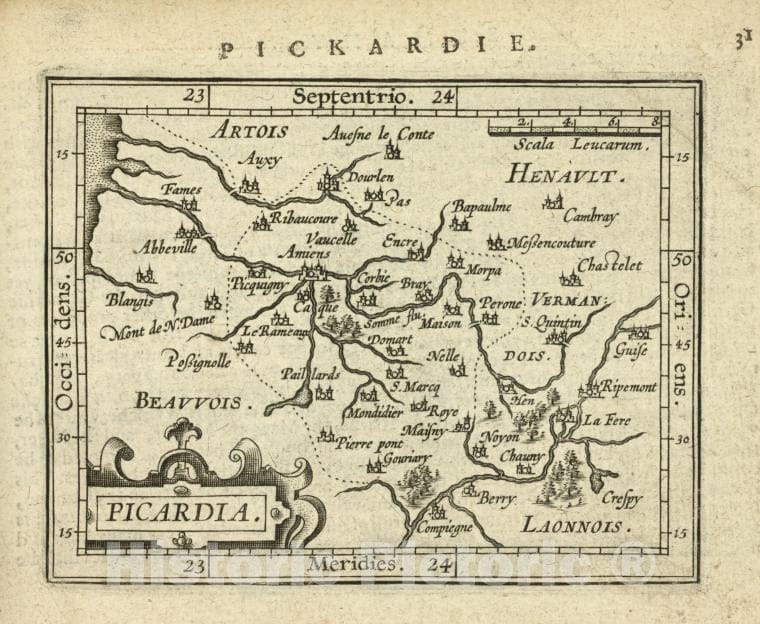 Historic 1603 Map - Picardia. - Norway - Picardy (France) - Abraham Ortelius His Epitome Of The Theater Of The Worlde. - Vintage Wall Art