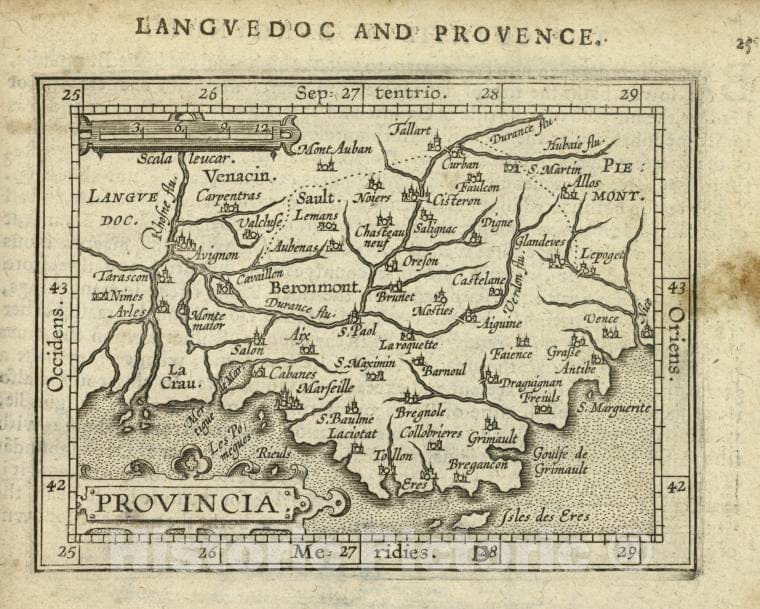 Historic 1603 Map - Provincia. - Norway - Provence (France) - Abraham Ortelius His Epitome Of The Theater Of The Worlde. - Vintage Wall Art