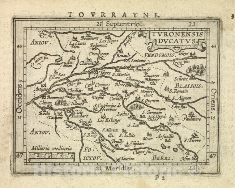 Historic 1603 Map - Turonensis Ducatus. - Norway - France - Abraham Ortelius His Epitome Of The Theater Of The Worlde. - Vintage Wall Art