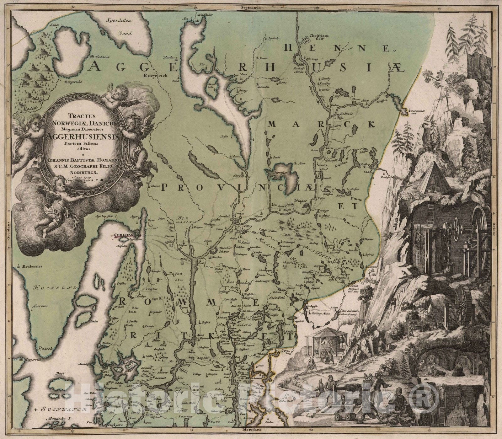 Historic Map : Norway, 1729 Tractus Norvegiae Danicus Magnam Dioeceseos Aggerhusiensis. , Vintage Wall Art