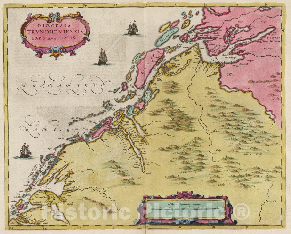 Norway, Dioecesis Trvndhemiensis Pars Avstralis, 1665 Atlas , Vintage Wall Art