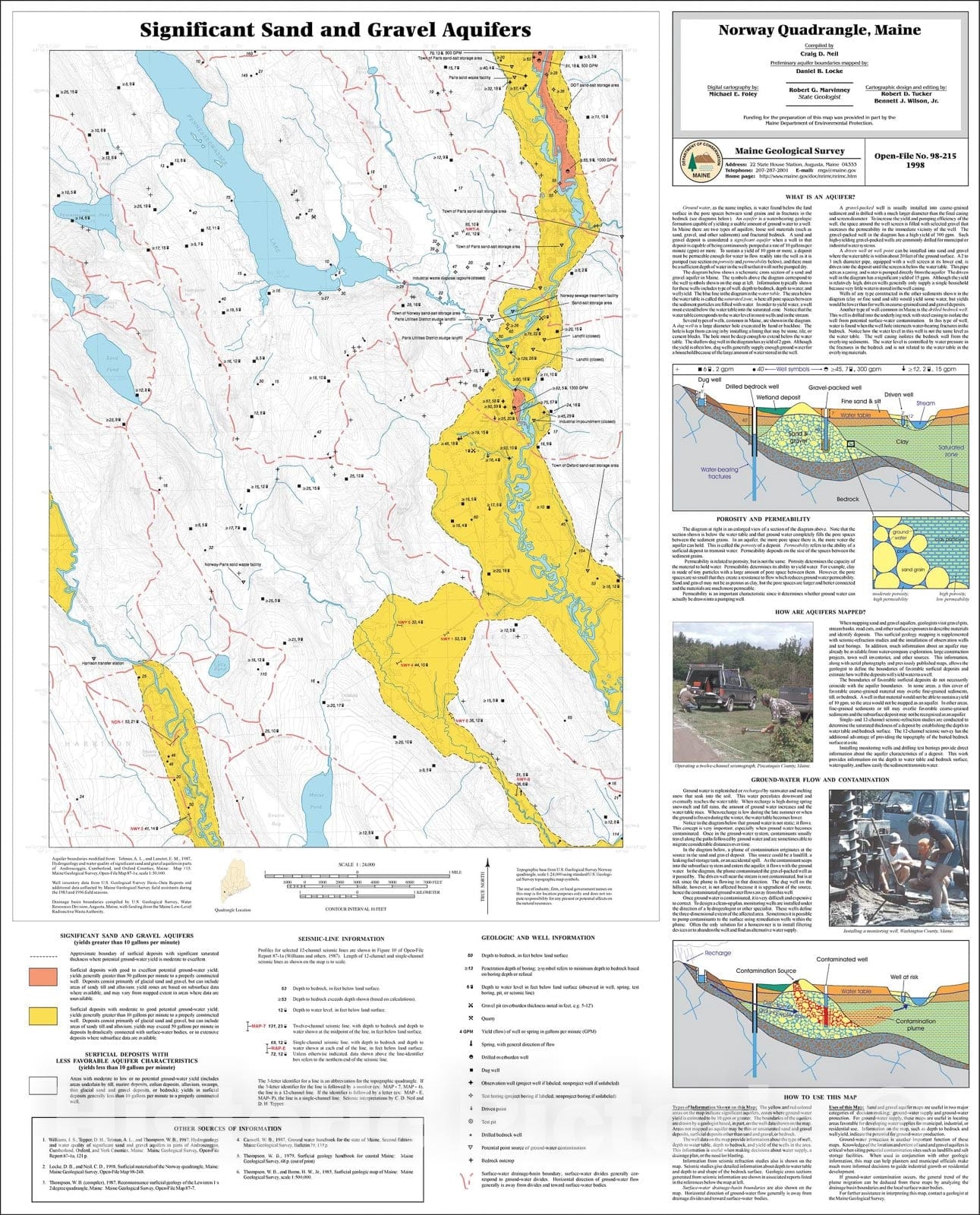 Map : Significant Sand and Gravel Aquifers in the Norway Quadrangle, Maine, 1998 Cartography Wall Art :