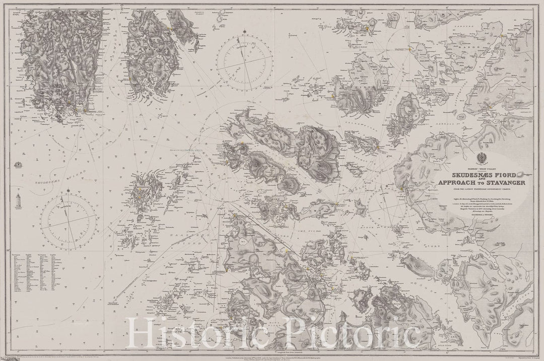 Map : Norway, west coast 1909, Norway, west coast, Skudesnaes Fiord, approach to Stavanger , Antique Vintage Reproduction