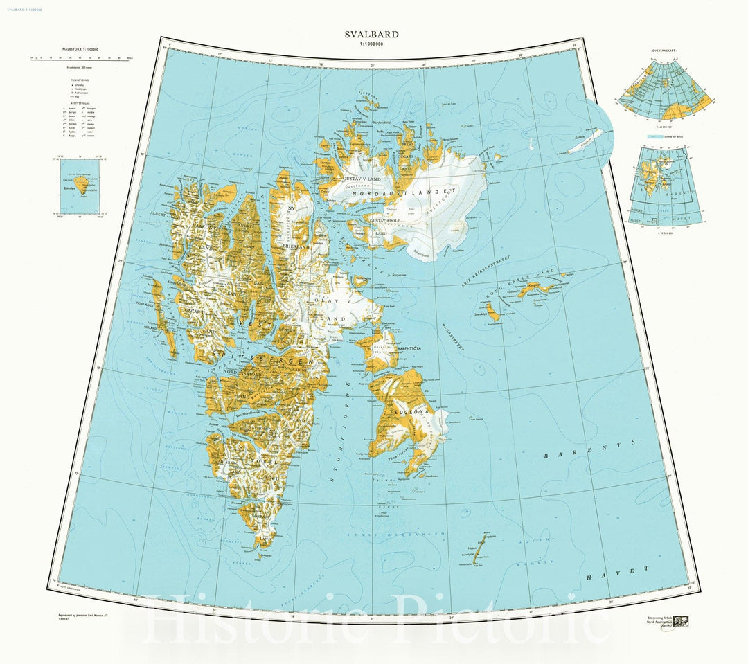 Map : Svalbard, Norway 1967, Svalbard 1:1,000,000, Antique Vintage Reproduction