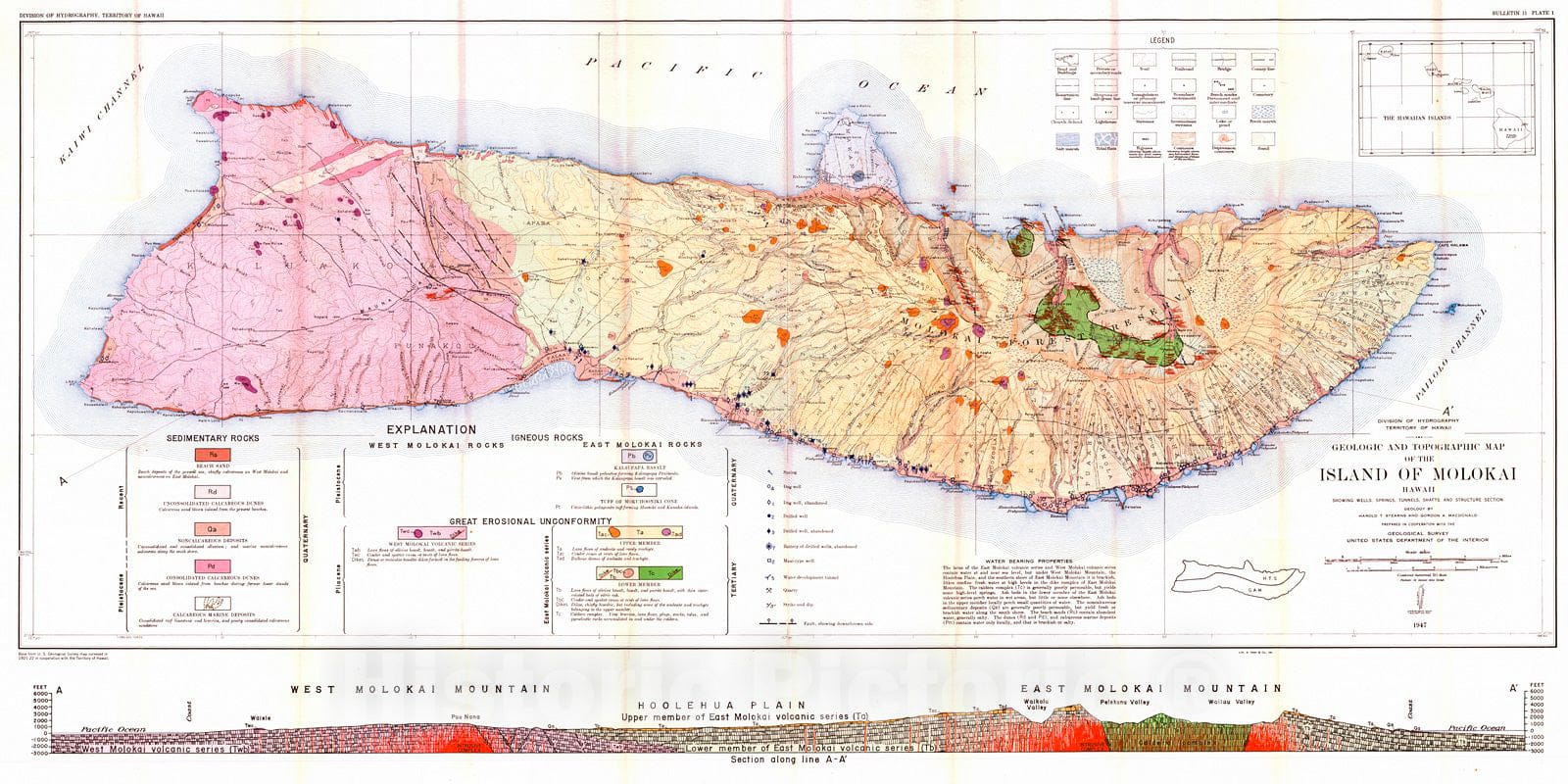 Historic Map : 1947 Geologic and Topographic Map of the Island of Oahu, Hawaii : Vintage Wall Art