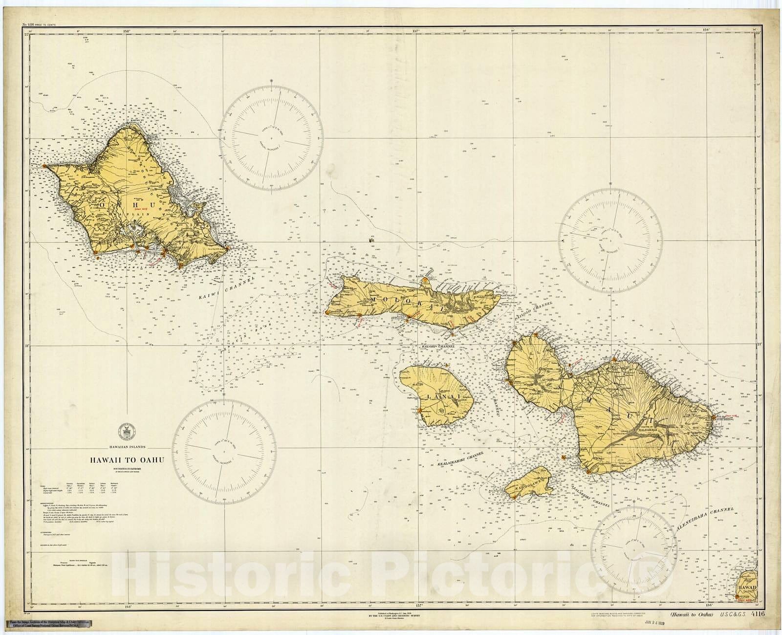 Historic Nautical Map - Hawaii To Oahu, 1929 NOAA Chart - Hawaii (HI) - Vintage Wall Art