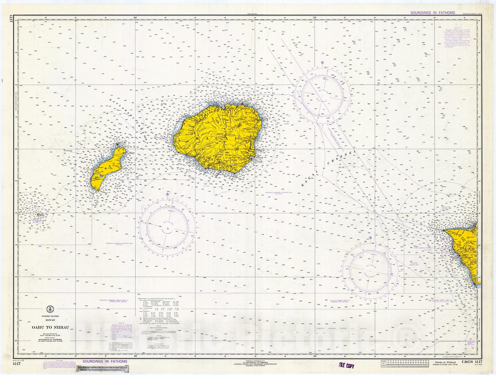 Historic Nautical Map - Oahu To Niihau, 1972 NOAA Chart - Hawaii (HI) - Vintage Wall Art