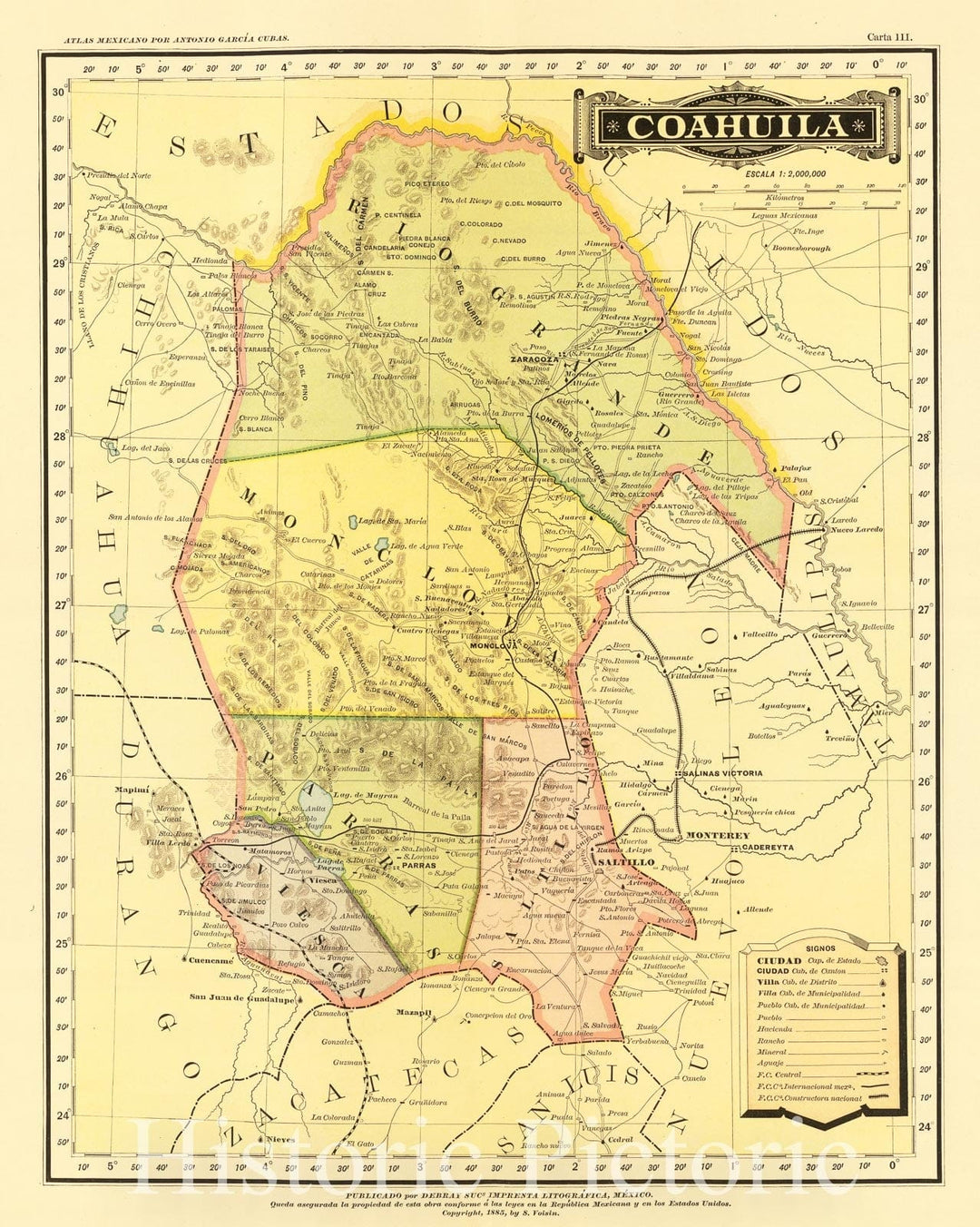 Historic Map : Text and Map: III. Coahuila. Carta No. 7., 1874, Vintage Wall Decor