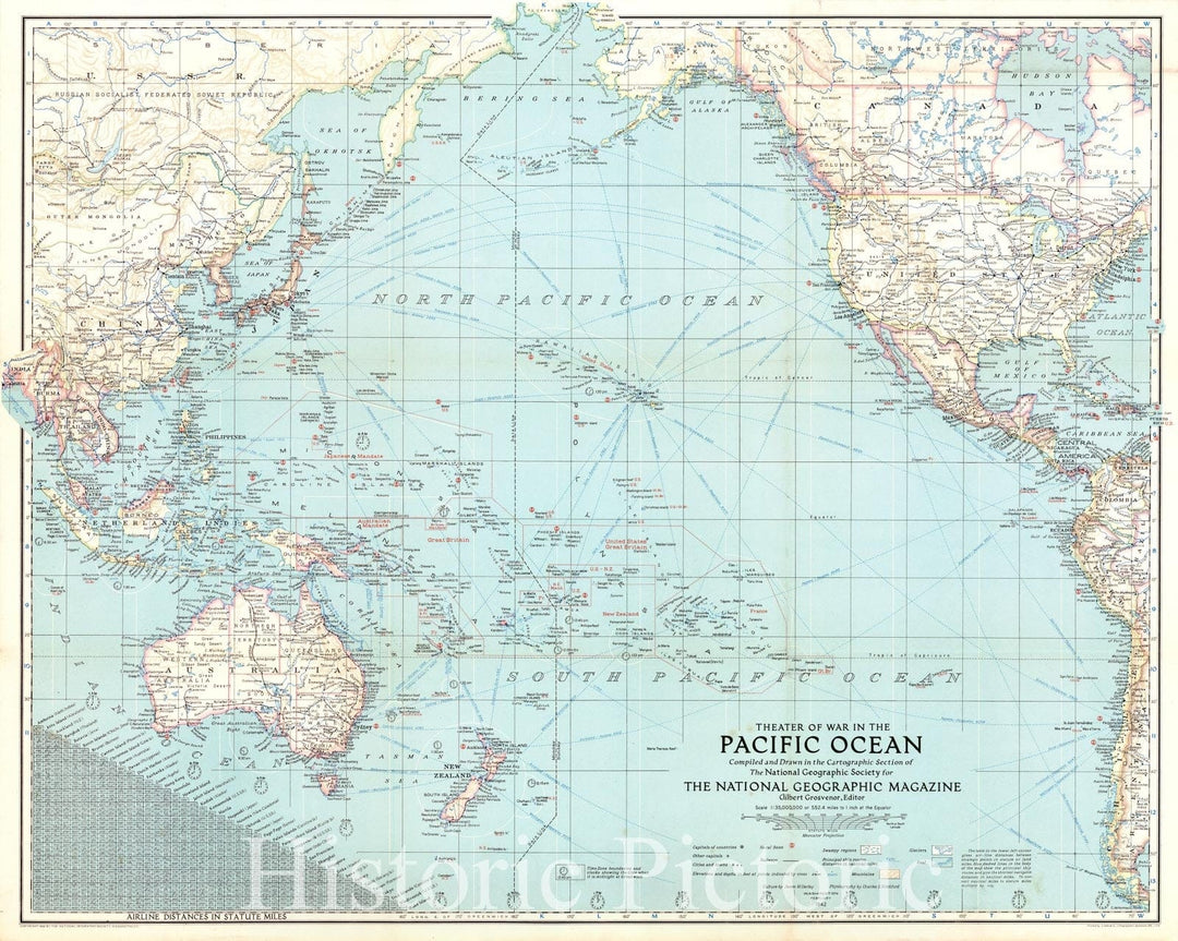 Historic Map : Theater of War in the Pacific Ocean, 1942, National Geographic Society, Vintage Wall Art