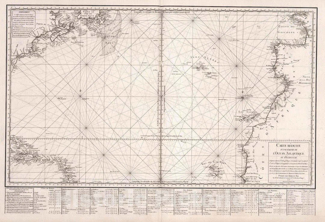 Historic Map : Carte Reduite d'une Partie de l'Ocean Atlantique ou Occidental, 1775 Chart - Vintage Wall Art