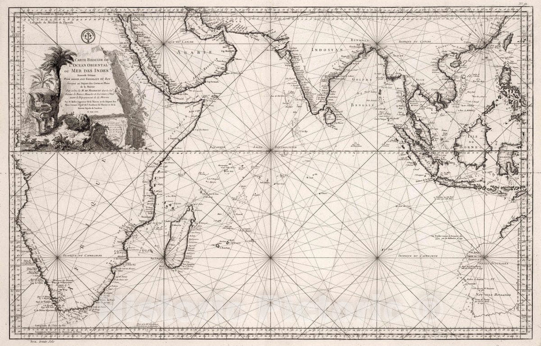 Historic Map : 1757 Chart Atlas - Carte Renuite de l'OCean Oriental ou Mer de Indes. - Vintage Wall Art