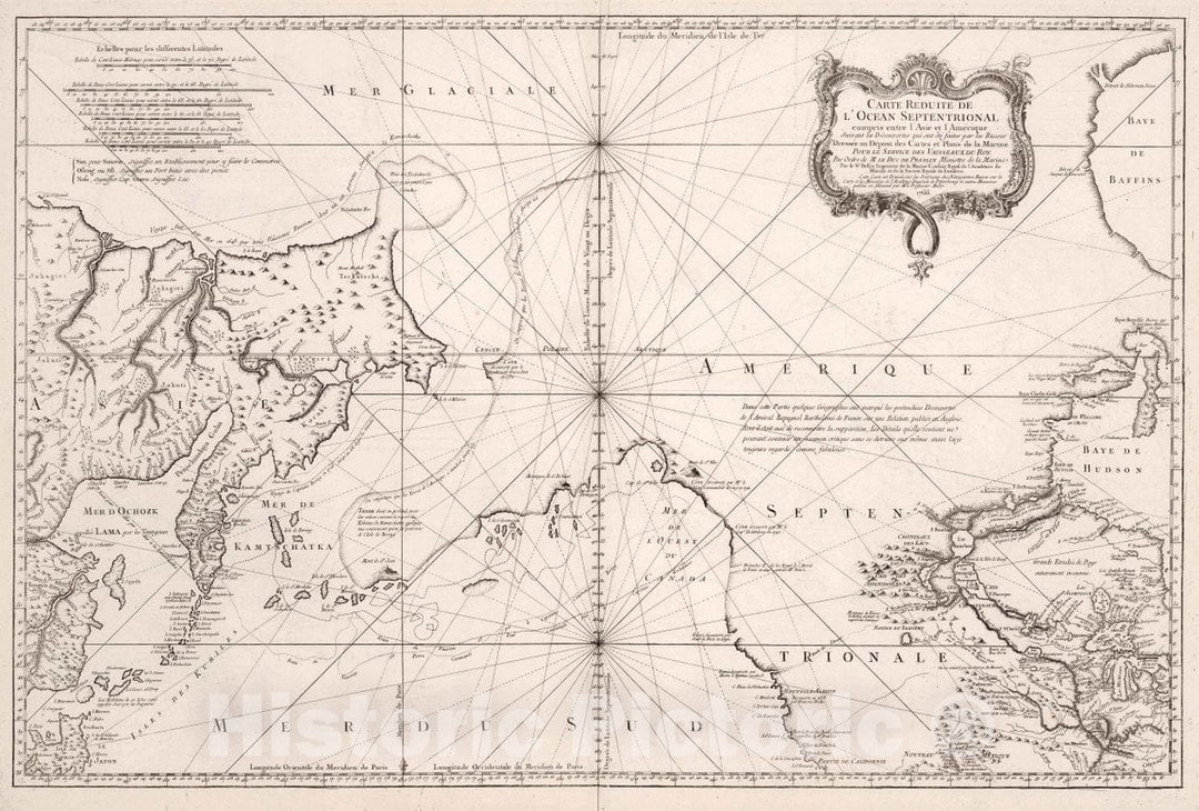 Historic Map : Russia, North Pacific, America Carte Reduite de l'Ocean Septentrionale, 1766 Chart , Vintage Wall Art