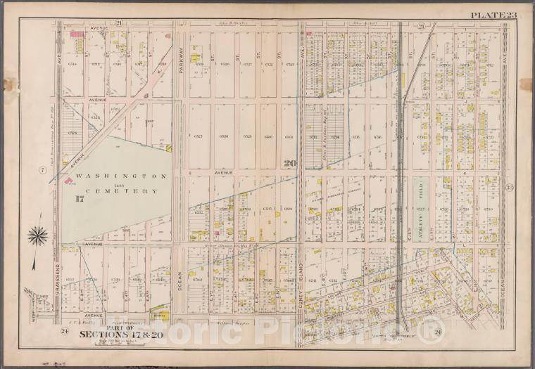 Historic 1907 Map - Plate 23:[Bounded By Avenue I, Ocean Avenue, Cedar Avenue, Bay - Brooklyn (New York, N.Y.)