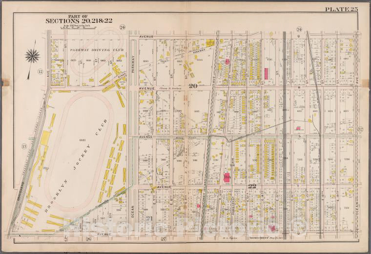 Historic 1907 Map - Plate 25: [Bounded By Avenue Q, Ocean Avenue, Avenue U. And Gravesend Avenue.] - Brooklyn (New York, N.Y.)