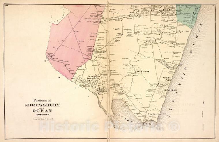 Historic Map - 1873 Monmouth Couty, New Jersey, (N.J.), Portions Of Shrewsbury And Ocean Townships. [Townships]