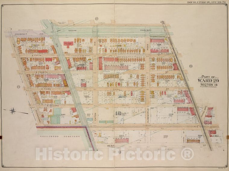 Historic Map - 1906 Brooklyn (New York, N.Y.) Part Of Ward 29, [Ocean Parkway, Church Lane, West, Fort Hamilton Ave; Gravesend Ave, Greenwood Ave, Prospect Ave. - Vintage Wall Art