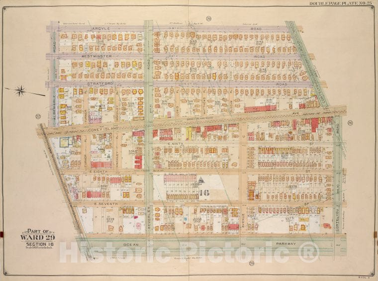 Historic Map - 1906, Brooklyn (New York, N.Y.) Vol. 5, No. 25; Part Of Ward 29, Section 16; [Bounded By Argyle Road, Cortelyou Road, Ocean Parkway; ]