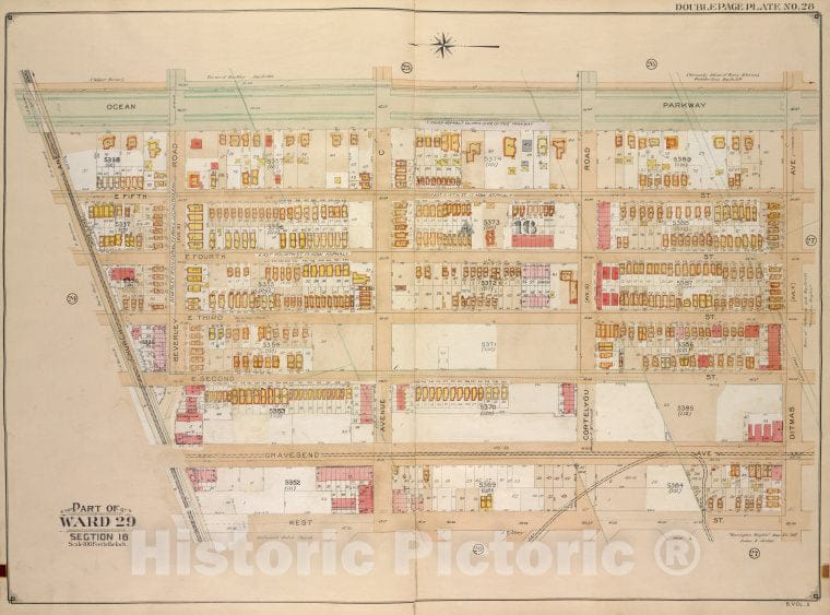 Historic Map - 1906 Brooklyn (New York, N.Y.) Vol. 5, Plate No. 28; Part Of Ward 29, Section 16; [ Ocean Parkway, Ditmas Ave; Including West St, Church Lane]