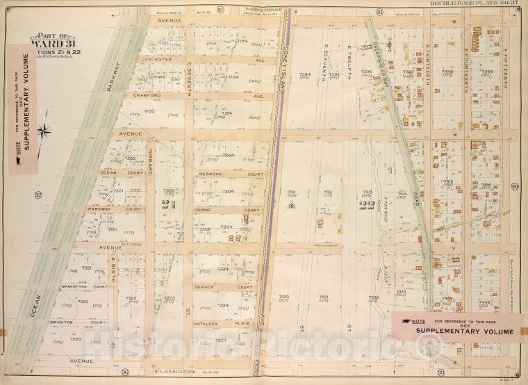 Historic Map - 1907 Brooklyn (New York, N.Y.) Vol. 7, Plate No. 37; Part Of Ward 31, Sections 21 & 22; [Ave W, E. 15Th St; Including Ave Z, Ocean Parkway]