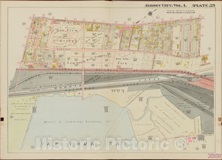 • .Historic Map - 1908 Hudson County, New York (N.Y.), Ocean Ave, Bay View Ave, New York Bay, Linden Ave. - Vintage Wall Art