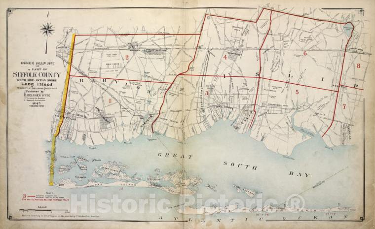 Historic Map - 1915 Suffolk County, New York (N.Y.) Index No.1. South Side - Ocean Shore, Long Island. Townships Of Babylon And Part Of Islip - Vintage Wall Art