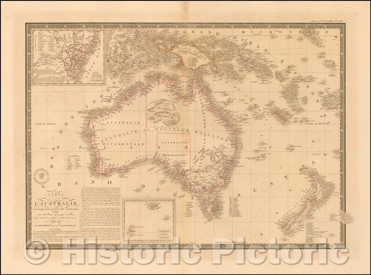 • .Historic Map - Carte De L'Australie, Partie Sud-Oest De La Oceanie, 1826, Alexandre Emile Lapie - Vintage Wall Art