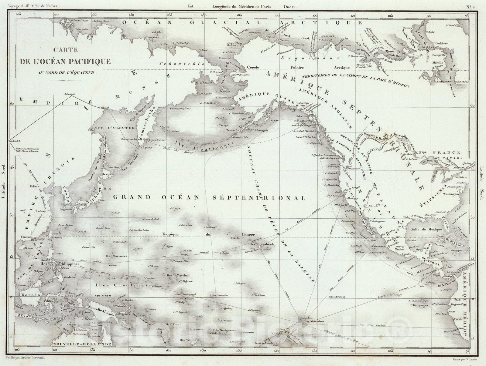 • .Historic Map : Carte De L'Ocean Pacifique Au Nord De L'Equateur., 1844, Vintage Wall Art