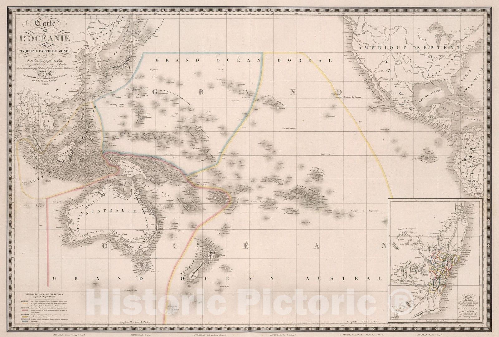 Historic Map : Carte d'Oceanie ou Cinquieme Partie du Monde., 1850, Vintage Wall Art