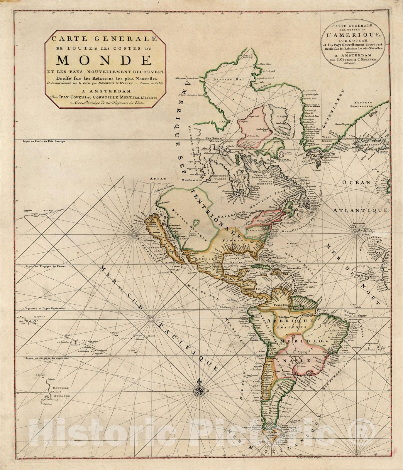 Carte Generale Des Costes De L'Amerique Sur L'Ocean, et les Pays Nouvellement decouvert, 1703,