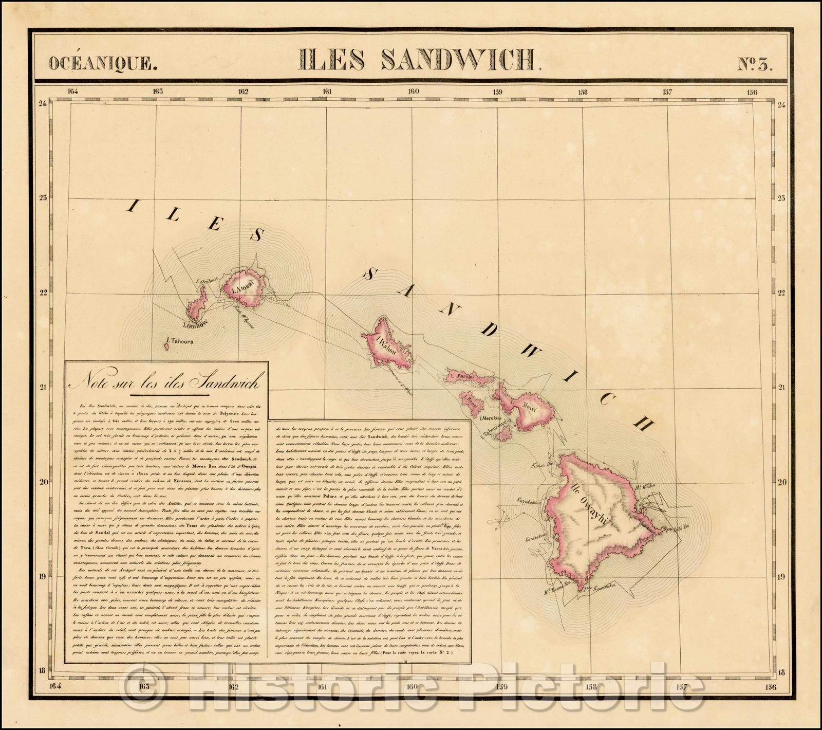• .Historic Map - Iles Sandwich Oceanique No. 3. / Map of Hawaii, from Vandermaelen's seminal Atlas, 1827, Philippe Marie Vandermaelen - Vintage Wall Art