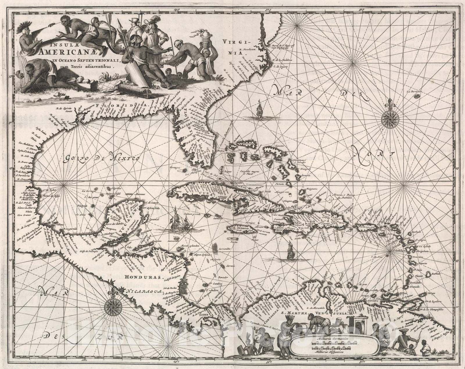 Historic Map : Insulae Americanae in Oceano Septentrionale cum Terris adiacentibus., 1671, Vintage Wall Art