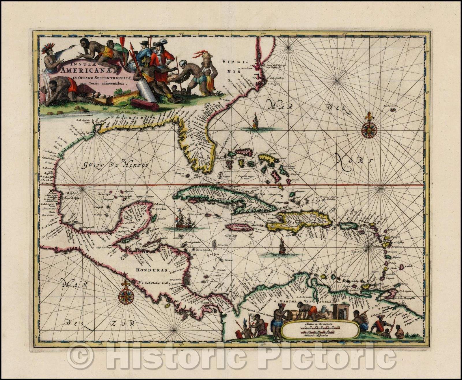 Historic Map - Insulae Americanae in Oceano Septentrionali cum Terris adiacentibus, 1671, John Ogilby v2