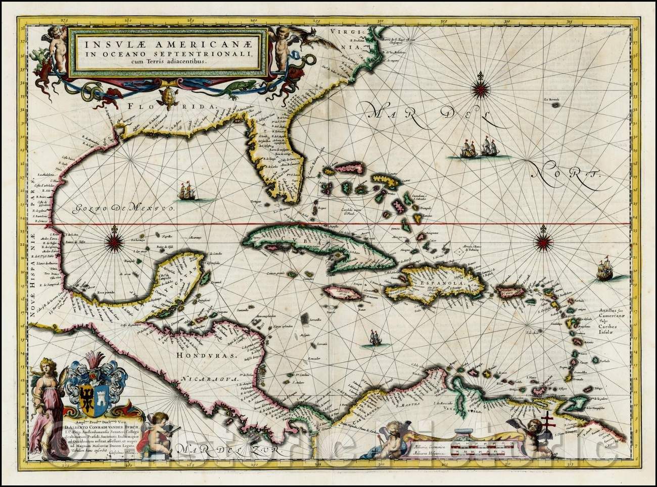 Insulae Americanae in Oceano Septentrionali cum Terris adiacentibus, 1640, Willem Janszoon Blaeu