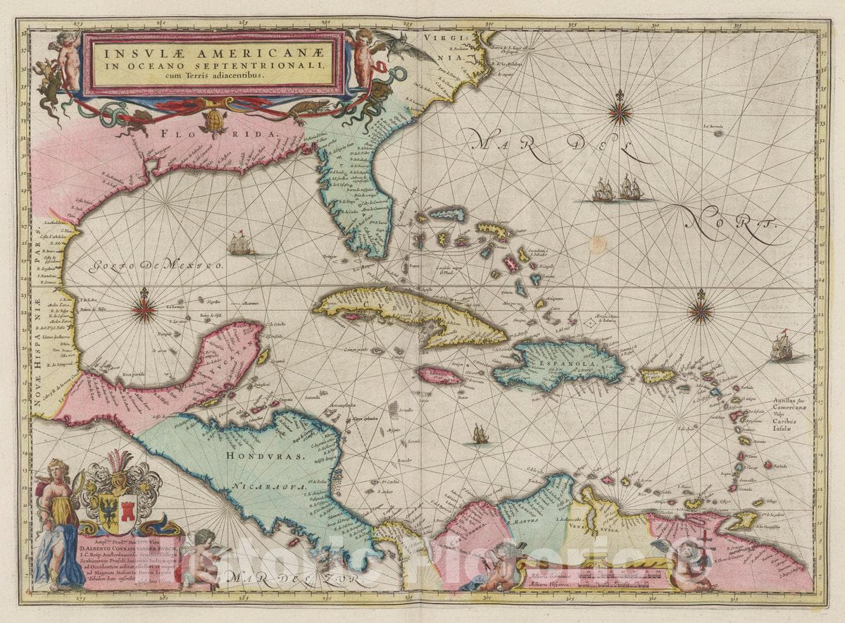 • .Historic Map : Insvlae Americanae in Oceano Septentrionali, 1665 Atlas - Vintage Wall Art