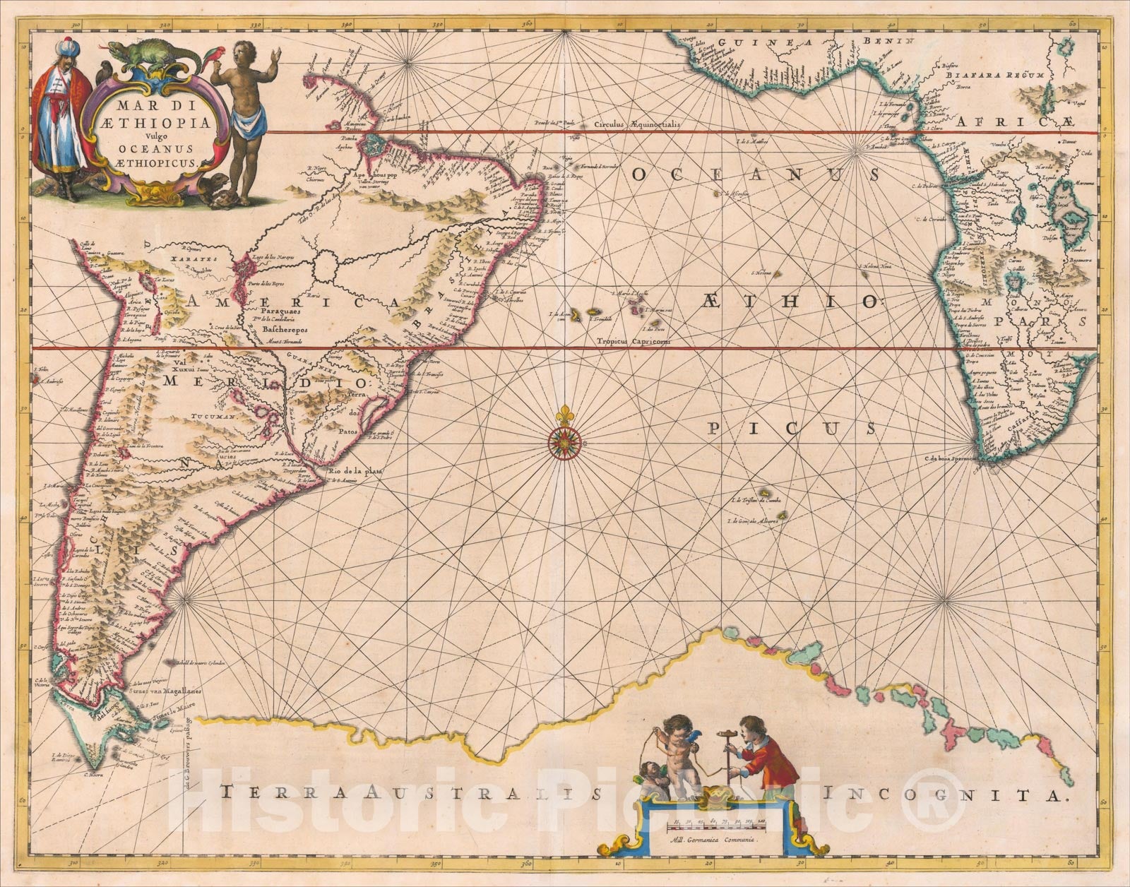 Historic Map : Mar Di Aethiopia Vulgo Oceanus Aethiopicus, 1650, Jan Jansson, Vintage Wall Art