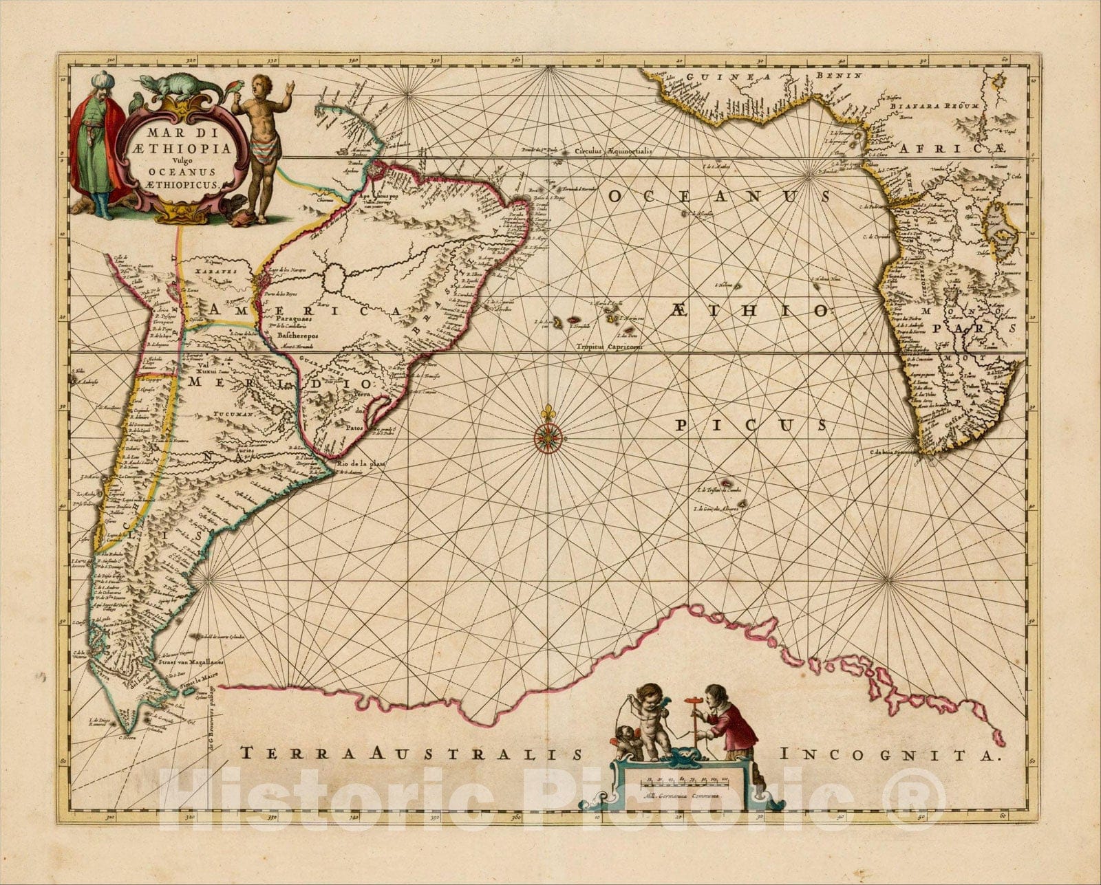 Historic Map : Mar Di Aethiopia Vulgo Oceanus Aethiopicus, c1650, Jan Jansson, Vintage Wall Art