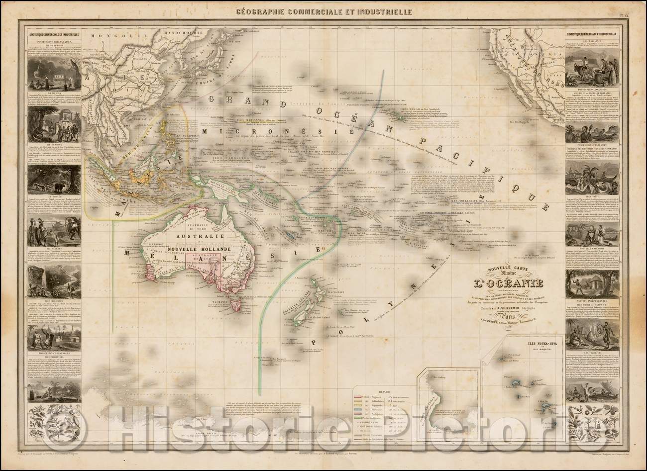 Historic Map - Nouvelle Carte Illustree de L'Oceanie, 1860, Alexandre Vuillemin v2